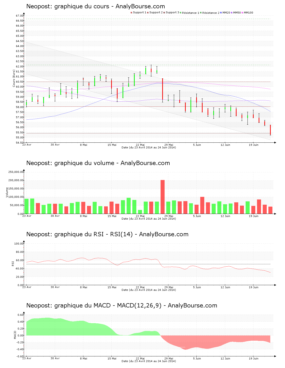 Depuis 4 séances, l’action Neopost (FR0000120560 XPAR NEO) est en diminution incessante sur les marchés.
