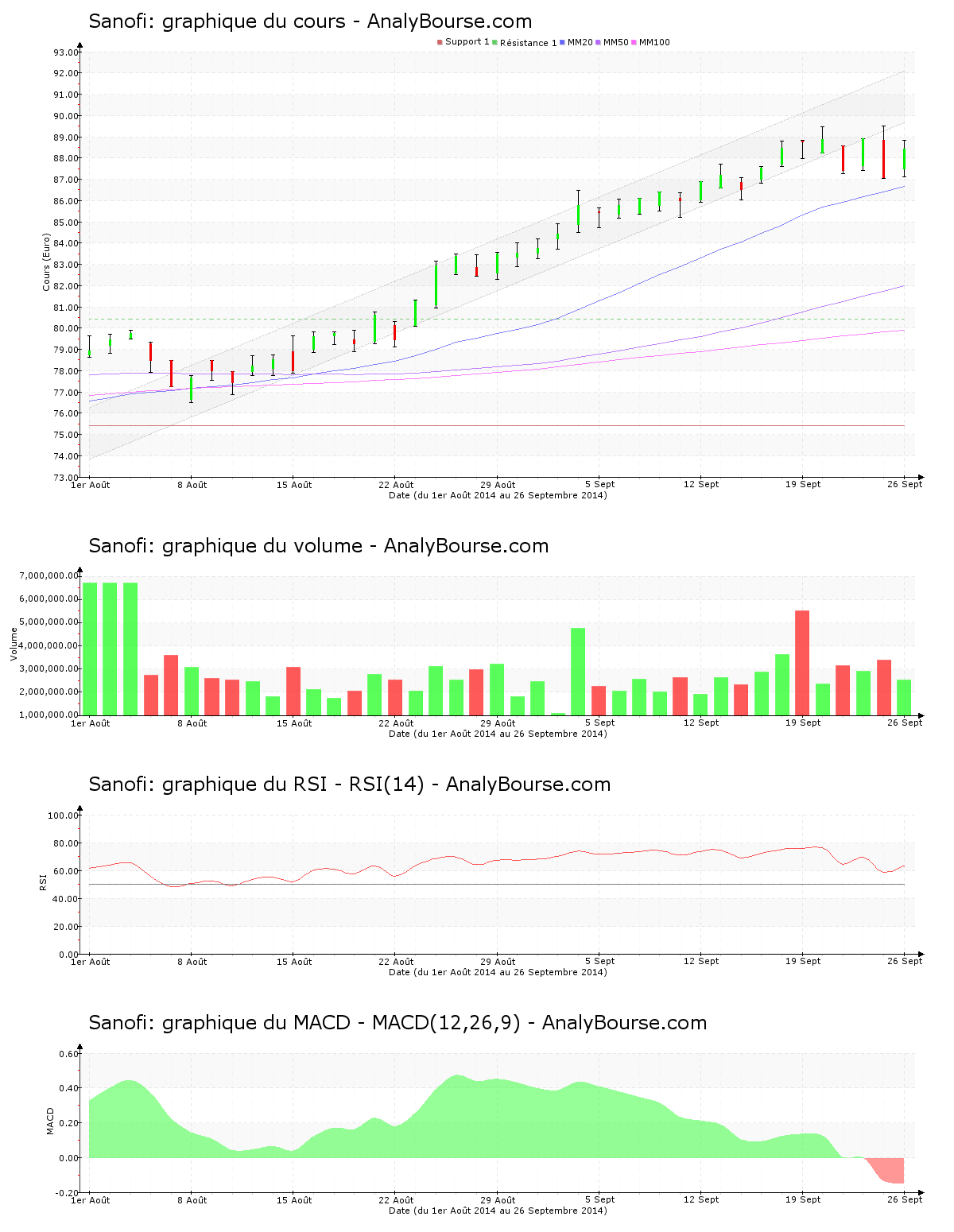 |Soulignée par un développement baissier de 0.39%, la sollicitation sur la valeur Sanofi cette semaine est neutre. Cette dernière dégonfle légèrement en effet juste de 0.350 €, commençant à 88.760 € pour aller à 88.410 € ces dernières séances. Avec un mouvement haussier de 2.15%, Sanofi s’appréciait au contraire la semaine dernière. L’action est sortie par le bas du canal dans lequel elle cheminait depuis un certain temps. A présent, elle fluctue profondément en deçà de son canal.