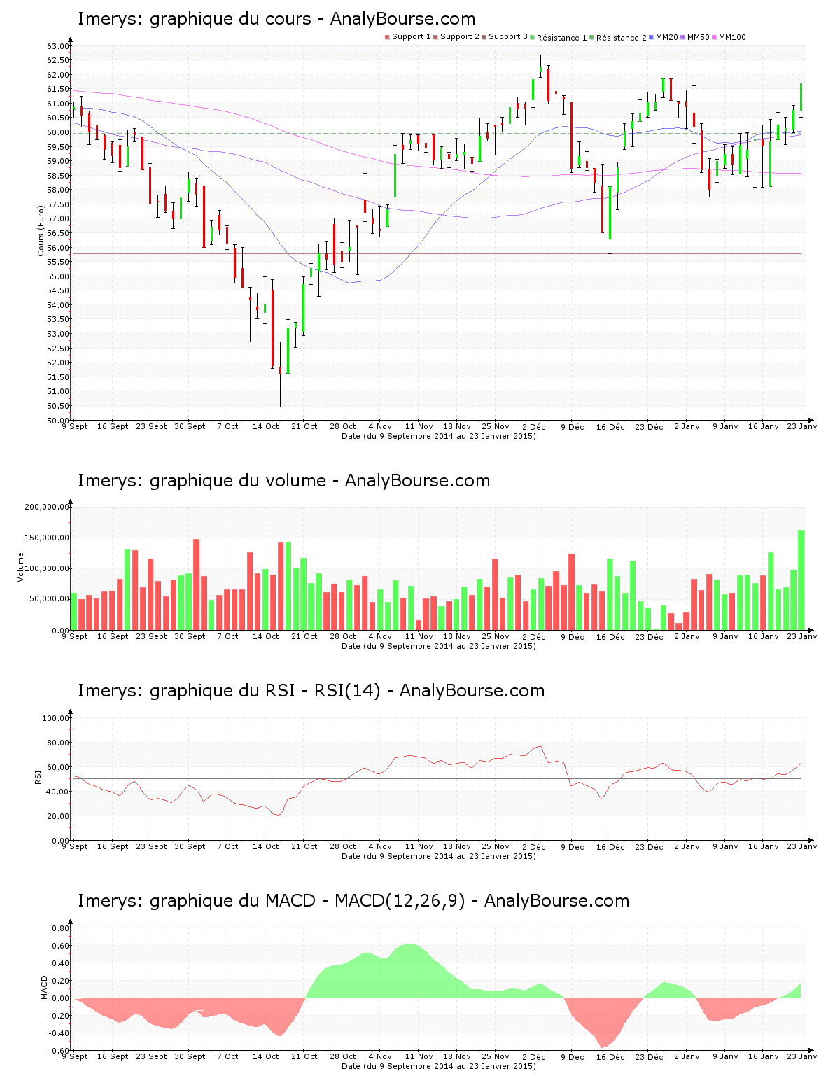 Avec un cours croissant de 3.59%, la valeur Imerys augmente ces derniers jours. Elle s’enchérit finalement de 2.140 €, allant de 59.530 € à 61.670 € ces cinq dernières séances de cotations. Symbolisée par un développement haussier de 0.52%, la volonté d’achat sur Imerys la semaine dernière était neutre. Le mouvement croissant reprend ainsi ces derniers jours. Imerys se développe ces cinq dernières séances dans des limites de 6.35%, présentant une certaine fébrilité sur le titre. Enfin, le cours a passé la résistance des 59.950 € cette semaine. La résistance suivante se place à 62.660 €.