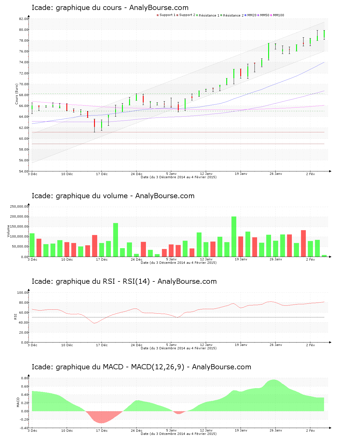 Avec un cours en hausse de 4.58%, le constat est franchement encourageant en une semaine de cotations pour Icade. Avec un comportement haussier de 22.44%, le résultat est de même manière très bénéfique en un mois pour le cours. Avec un cours en augmentation de 22.03%, Icade flambe sur un an.
