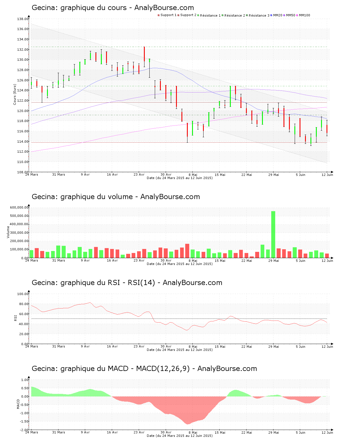 L’action traduit sur une courte période une trajectoire en régression. De manière similaire, l’action exprime sur le long terme une tendance en décroissance. La poursuite de la trajectoire décroissante tolère de viser le support de 113.750 €. Un retournement de l’orientation en diminution autorise par contre de cibler la résistance de 119.150 € puis 124.800 €.