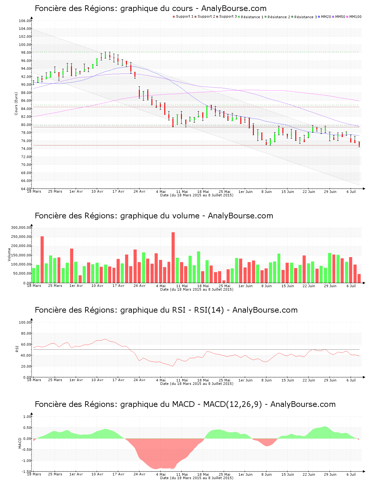 Depuis 3 jours de cotations, la valeur Foncière des Régions (FR0000064578 XPAR FDR) est en décroissance ininterrompue à la Bourse de Paris.