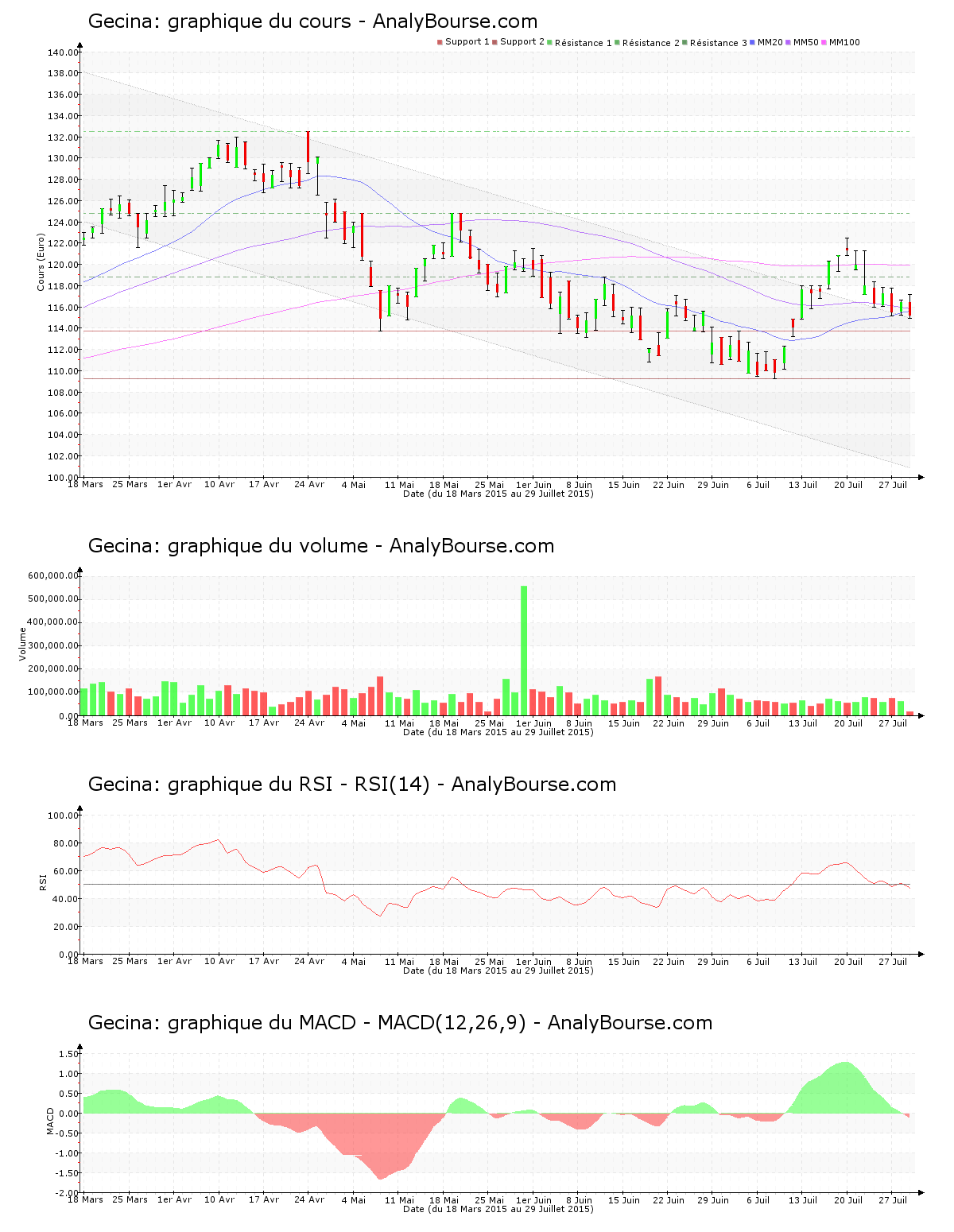 Côté indicateurs, pour le RSI, on repère qu’il est en décroissance ce jour. Il a basculé au niveau de vente, cela peut dévoiler une base de tendance décroissante sur la durée pour l’action Gecina. En ce qui concerne le MACD, on relève qu’il est en forte décroissance aujourd’hui. L’indicateur MACD est passé en secteur négatif ce mercredi, cela pourrait signaler un prémice d’une orientation en diminution sur le long terme pour la valeur Gecina.