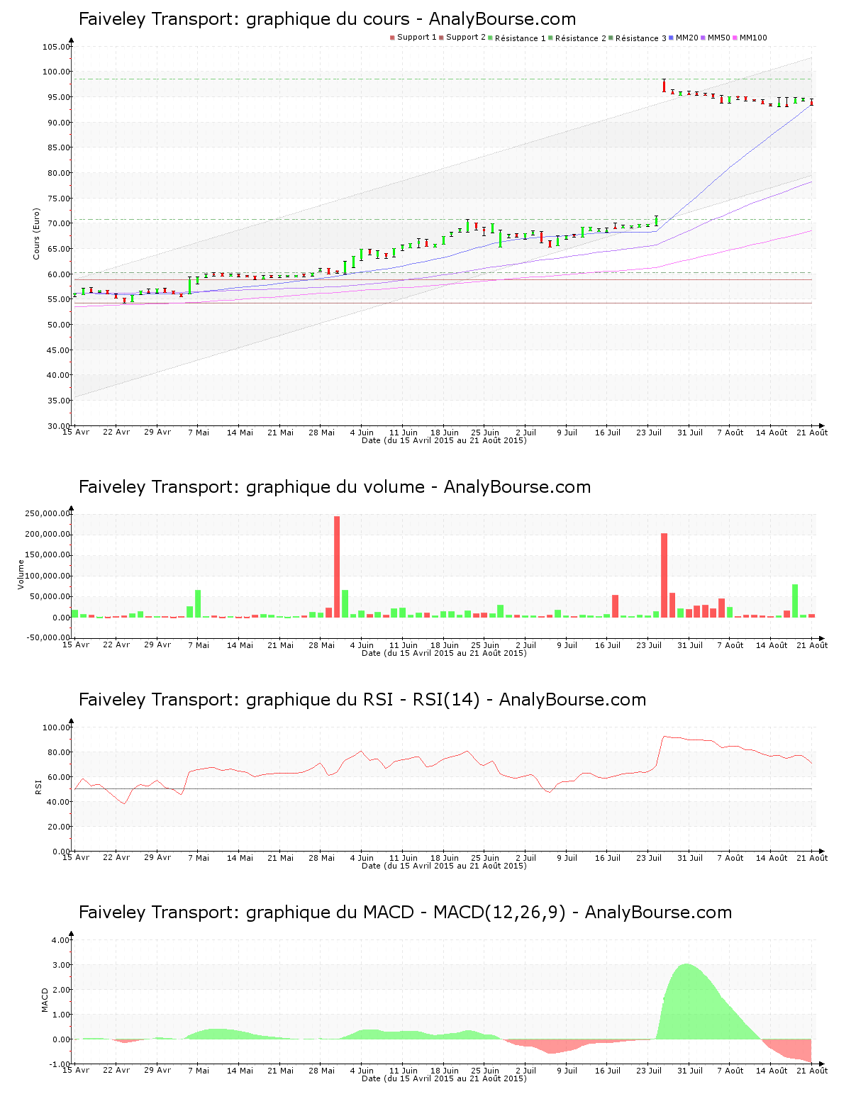 Ces informations constituent une analyse technique de la valeur Faiveley Transport au samedi 22 août 2015. Cette analyse peut être invalidée par des éléments plus récents, et ne constitue en aucune manière une incitation d’achat ou de vente sur les marchés financiers. Le lecteur reste libre et responsable de l’interprétation et de l’usage faits de ces informations.