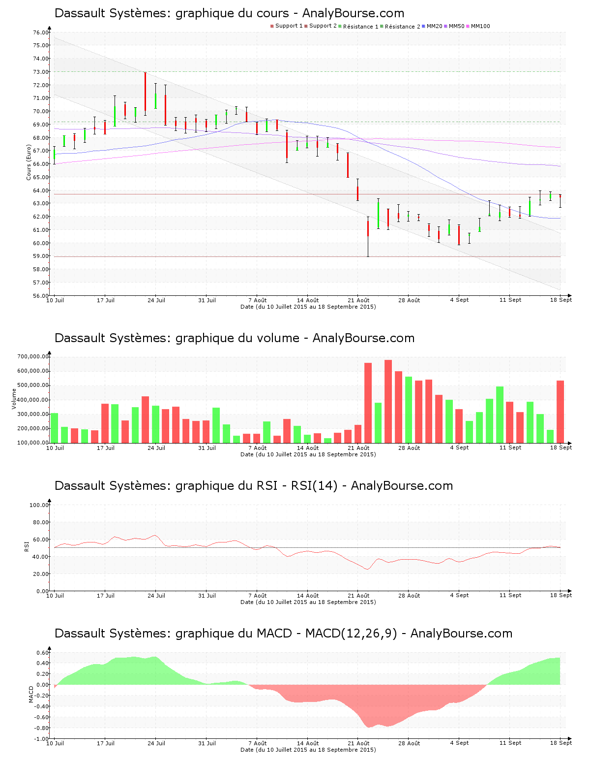 L’action Dassault Systèmes affiche encore ces dernières séances une pression acheteuse, imprégnée par un cours haussier de 2.34%. L’action se revalorise à présent de 1.450 €, naviguant de 62.020 € à 63.470 € ces derniers jours. Cette dernière était déjà en progression la semaine dernière, avec un mouvement haussier de 3.50%. Avec un cours haussier de 5.92% en deux semaines, le titre de Dassault Systèmes gonfle donc ces dix derniers jours. La valeur se localise largement au-dessus de son canal. Elle ne se limite en effet plus dans le canal à l’intérieur duquel cette dernière évoluait depuis un certain temps.