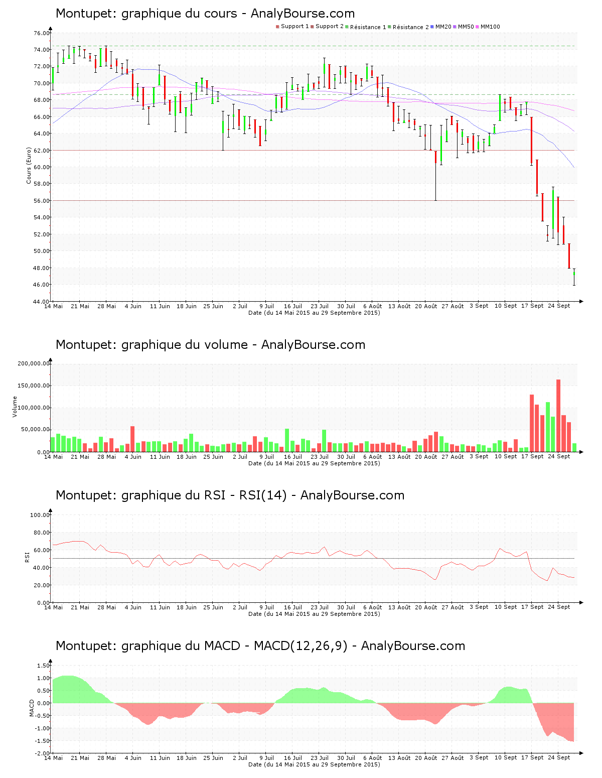 Pour les indicateurs, on remarque que le MACD est en régression ce mardi 29 septembre. Il esquisse désormais une évolution du titre en vigoureuse décroissance à moyen-court terme.