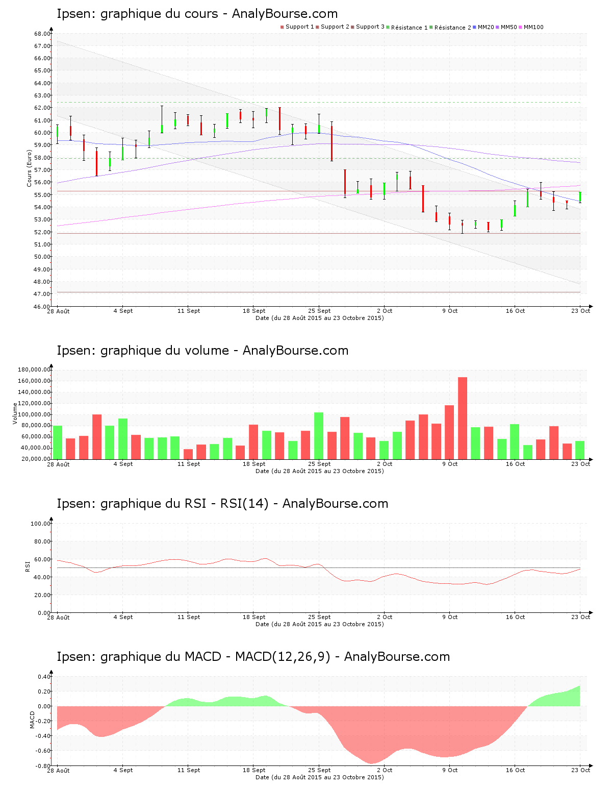 Du côté des indicateurs, le RSI est ces cinq derniers jours de cotations stable. Il se localise ainsi encore dans le niveau neutre. Pour terminer, on remarque que l’indicateur MACD est en grande progression cette semaine. C’est à présent une trajectoire du cours en grande progression qu’il représente à moyen terme. Le MACD a basculé en territoire positif lundi dernier, ce qui peut dessiner un engagement d’une orientation haussière sur la durée pour Ipsen.
