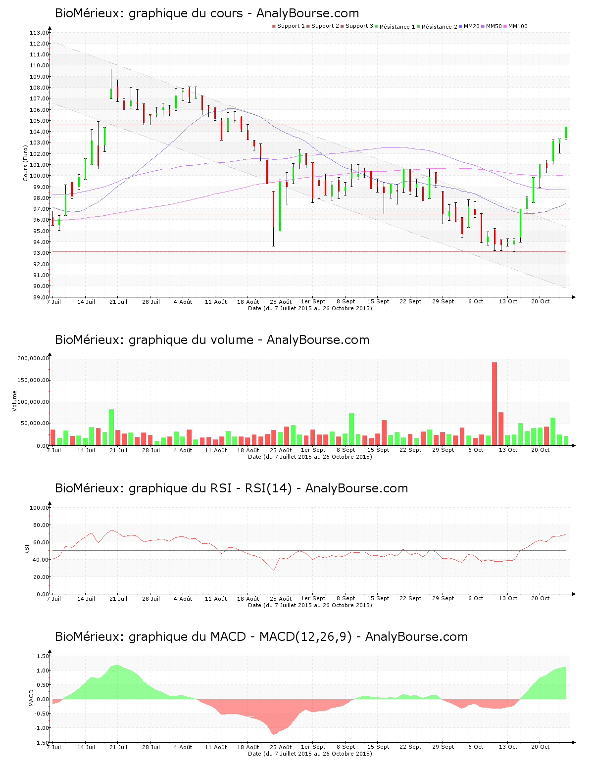 Progression depuis trois séances pour l’action BioMérieux (FR0010096479 XPAR BIM) à la Bourse.