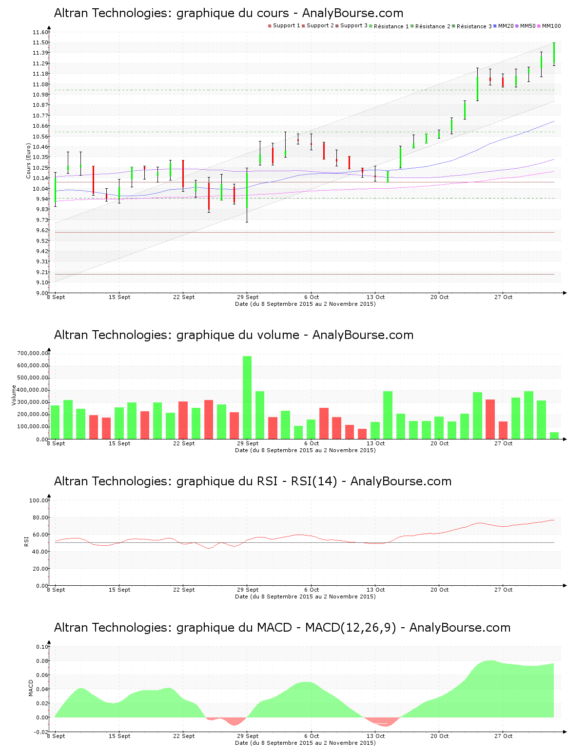 La volonté d’achat sur Altran Technologies en une semaine de cotations est bien présente, concrétisée par un développement haussier de 3.42%. Affectée par un développement haussier de 10.37%, l’intention d’achat sur le cours sur un mois est de même manière extrêmement conséquente. L’intention d’achat sur Altran Technologies depuis un an est remarquablement importante, concrétisée par un cours croissant de 46.56%.