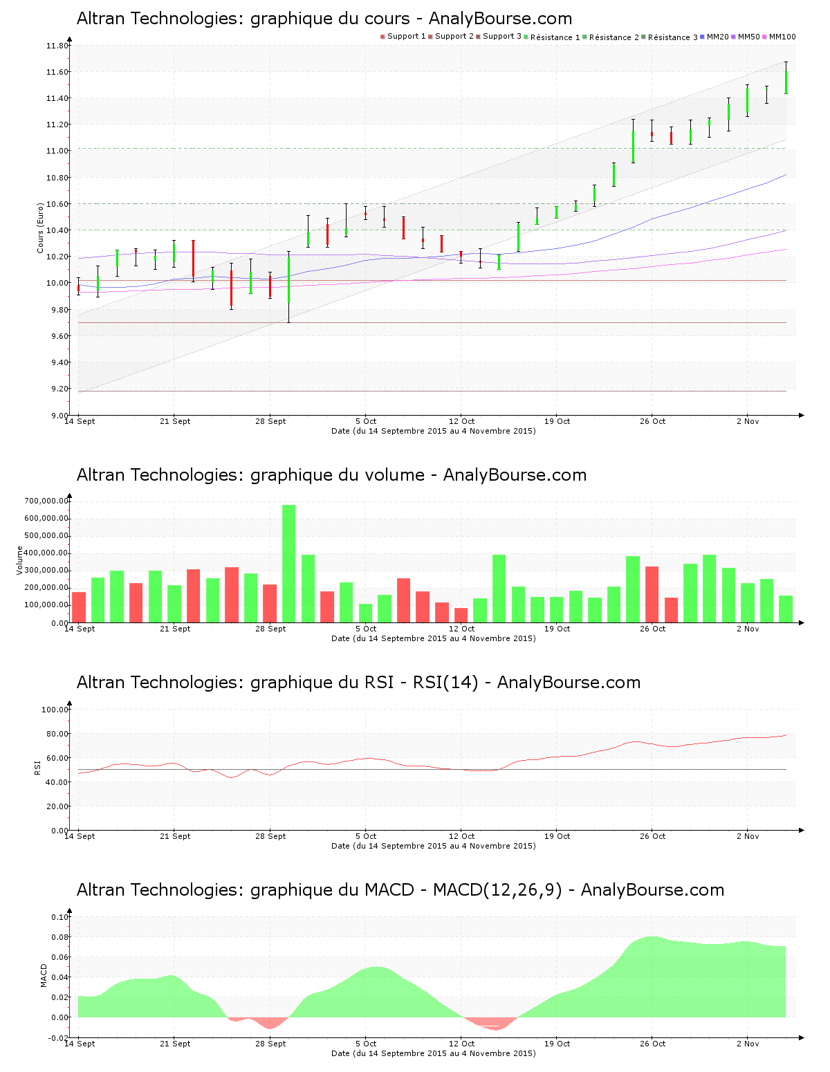 Concrétisée par un comportement haussier de 3.94%, la demande sur Altran Technologies en une semaine de cotations est bien présente. Avec un mouvement en vigoureuse hausse de 10.69%, le titre est de même depuis un mois très recherché. Avec un comportement haussier de 50.65%, Altran Technologies explose depuis un an.