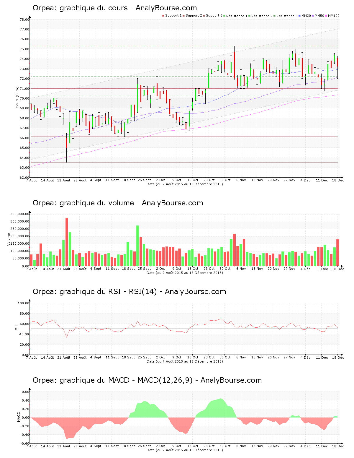 Orpea est ces cinq dernières séances de cotations désiré, avec un développement en augmentation de 2.62%. L’action atteint finalement un montant de 73.220 €. Le constat était à l’inverse décourageant la semaine dernière pour Orpea, avec un mouvement baissier de 1.25%. La valeur Orpea se redresse par conséquent un peu ces derniers jours. Le titre a passé la résistance des 72.200 € cette semaine. La prochaine résistance se localise à 75.300 €. Orpea oscille ces cinq derniers jours de cotations dans des limites de 5.37%, ce qui dévoile une relative instabilité sur le titre. C’est au milieu de son canal que l’action fluctue.