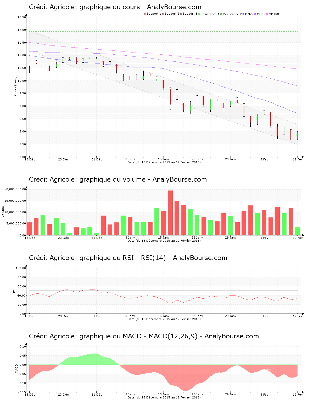 Avec un volume à 10:58 d’approximativement 3 millions de titres échangés, quantifiée par un comportement haussier de 2.74%, Crédit Agricole affiche aujourd’hui une forte pression acheteuse. La valeur atteint maintenant 7.880 €. Matérialisée par un cours baissier de 6.58%, Crédit Agricole supportait à l’inverse hier une forte pression vendeuse. La proportion acheteurs/vendeurs se retourne par conséquent avec force ce vendredi. Crédit Agricole évolue ce jour dans un range de 4.17%, ce qui indique une certaine effervescence sur le titre.