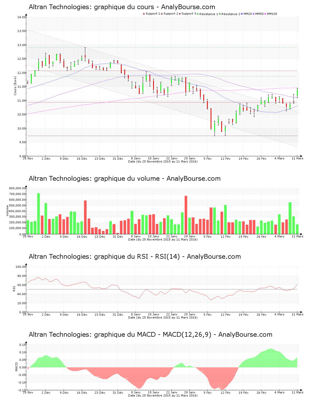 Avec un mouvement haussier de 2.61%, Altran Technologies est en hausse depuis une semaine. Le titre explose de même sur un mois, avec un cours haussier de 15.30%. Le constat est franchement bon depuis un an pour Altran Technologies, avec un développement haussier de 28.15%.