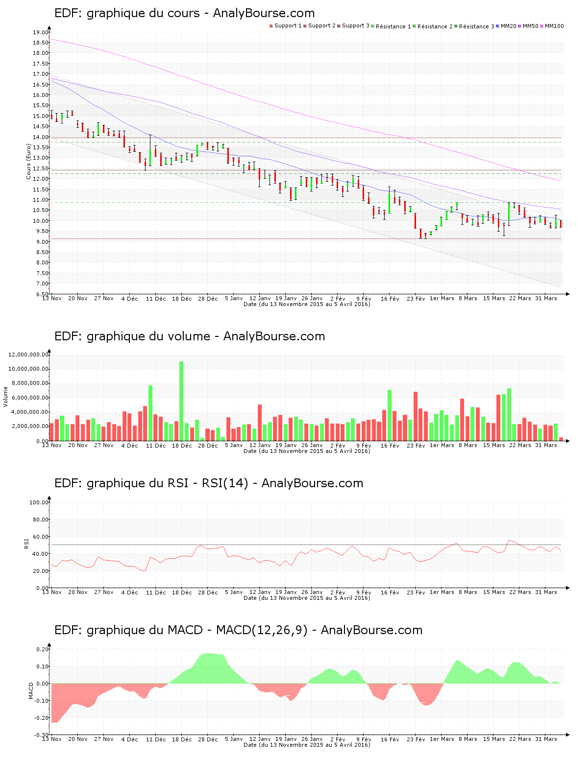 Déplacement de l’indicateur MACD en territoire négatif pour la valeur EDF (FR0010242511 XPAR EDF) ce mardi 5 avril sur les marchés.