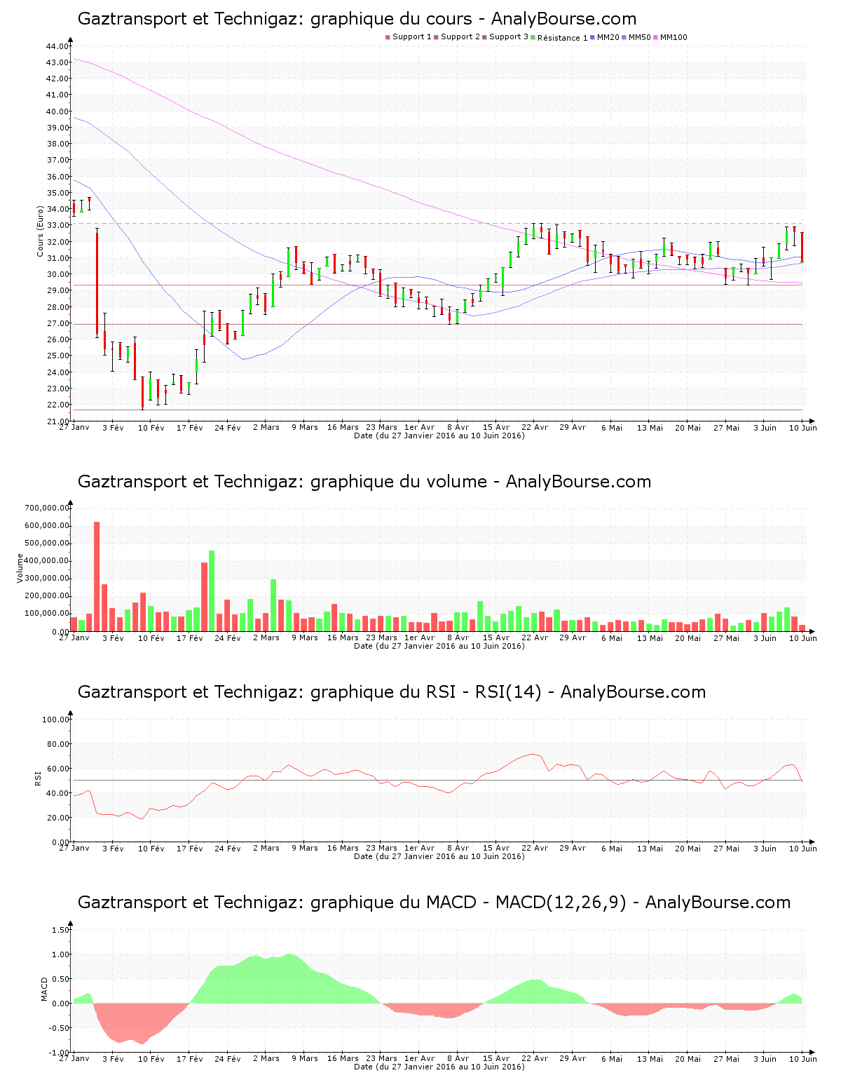 Animée par un cours en augmentation de 0.52%, la volonté d’achat sur Gaztransport et Technigaz en une semaine est neutre. Avec un cours en hausse de 1.22%, le bilan est de même à l’équilibre sur un mois pour le cours. Avec un mouvement baissier de 47.67%, Gaztransport et Technigaz plonge toutefois depuis un an.