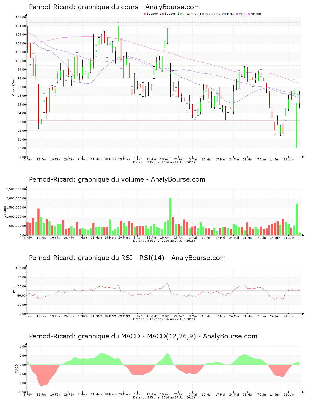|Passage de l’indicateur RSI dans le niveau d’achat pour la valeur Pernod-Ricard (FR0000120693 XPAR RI) ce lundi 27 juin à la Bourse.