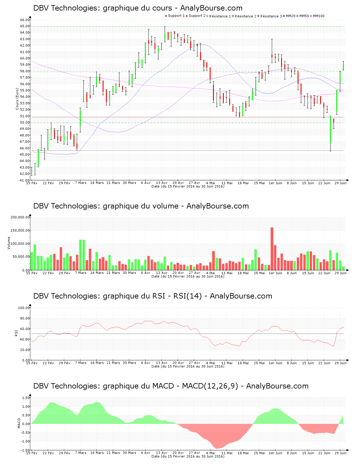 DBV Technologies: le cours franchit la résistance des 57.840 €