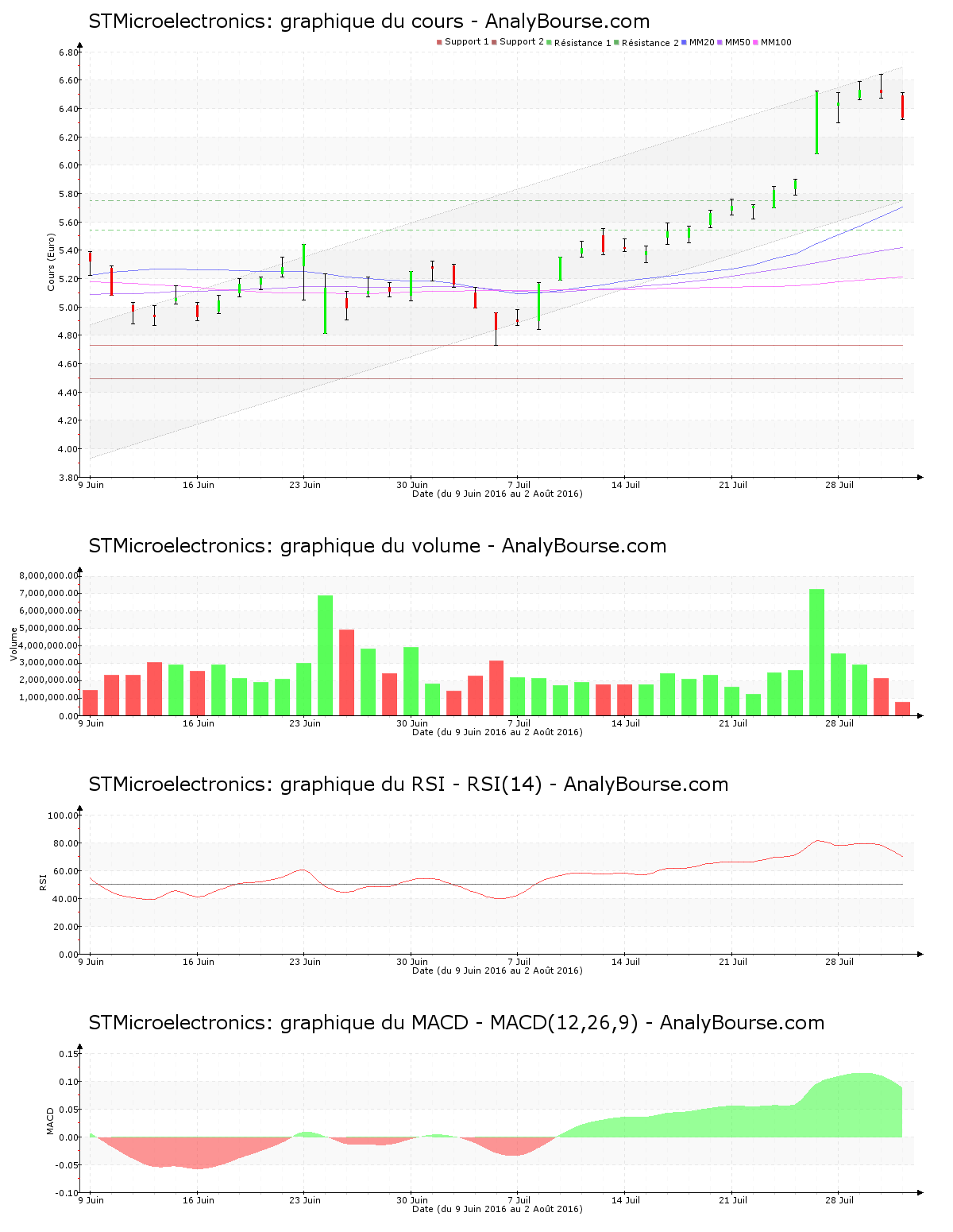 Dans un volume d’approximativement 747000 actions échangées à 11:57, l’action STMicroelectronics est en grande décroissance aujourd’hui, avec un cours baissier de 2.61%. La valeur atteint maintenant la valorisation de 6.340 €. Avec un comportement baissier de 0.31%, le constat était neutre hier pour STMicroelectronics. L’évolution en baisse reprend par conséquent ce mardi 2 août. Avec un pourcentage de 3.01% éloignant les extrêmes de STMicroelectronics, on relève des échanges assez fébriles ce mardi 2 août sur le cours.