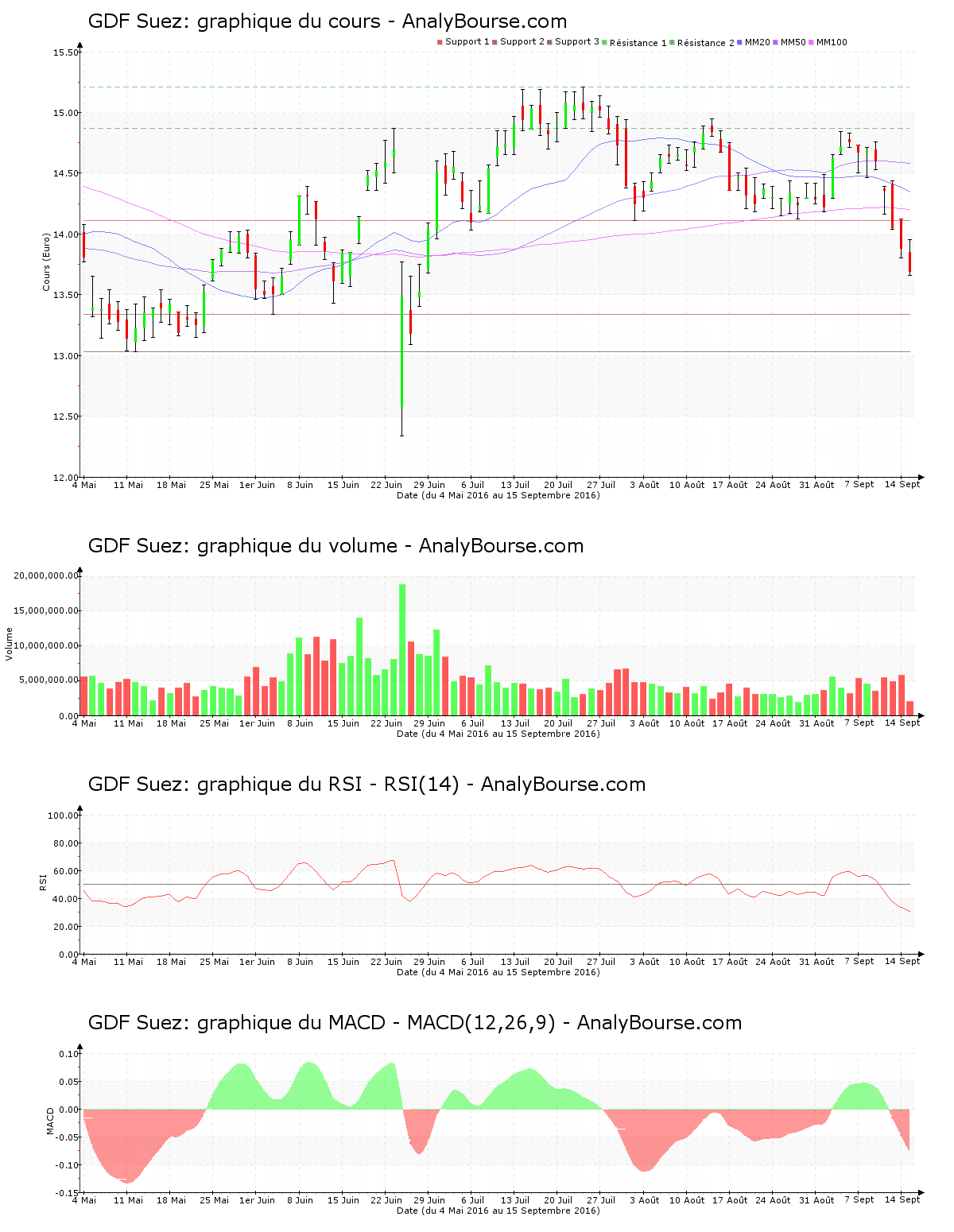 On relève que ce jeudi 15 septembre l’indicateur MACD est en régression. C’est dorénavant une tendance du titre en solide baisse qu’il montre à moyen terme.