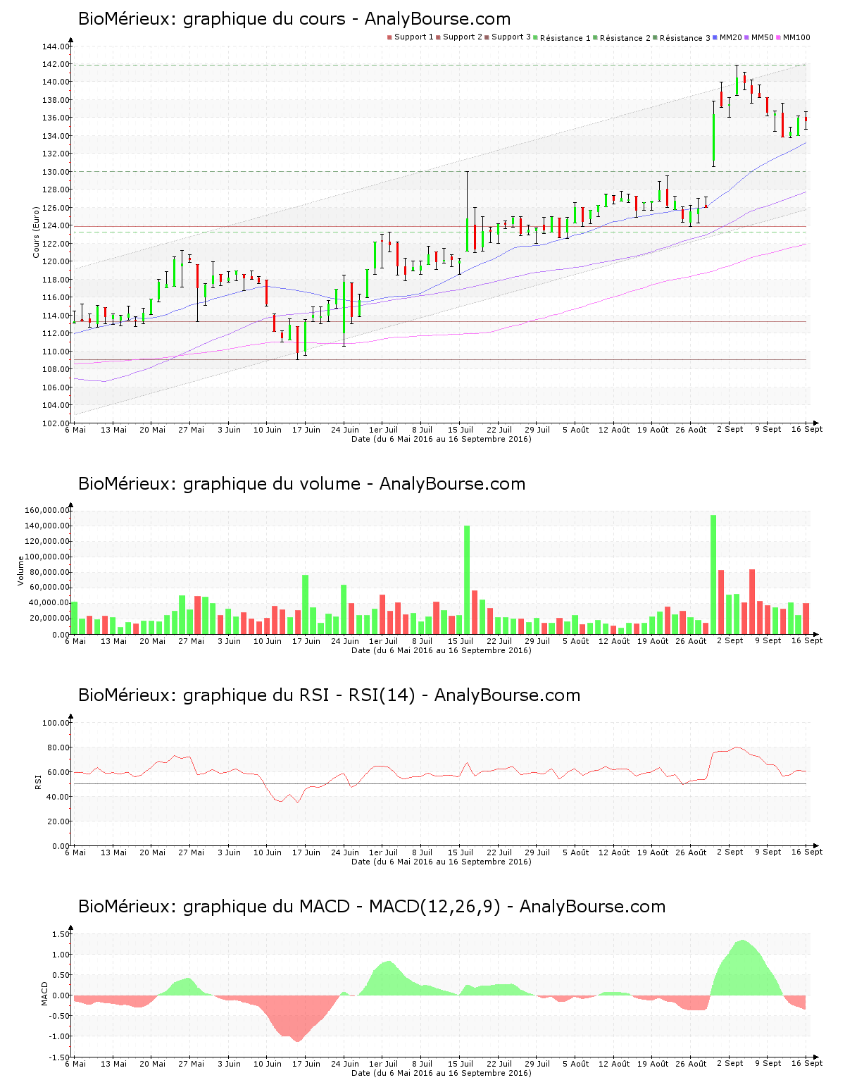 |Soulignée par un cours en diminution de 0.66%, BioMérieux affiche encore ces derniers jours un équilibre des forces. L’action BioMérieux était déjà la semaine dernière peu entourée, avec un mouvement stable de 0.65%. Elle atteint ainsi finalement la cotation de 135.650 €. La valeur se positionne au milieu du canal dans lequel cette dernière se confine ces dernières semaines.
