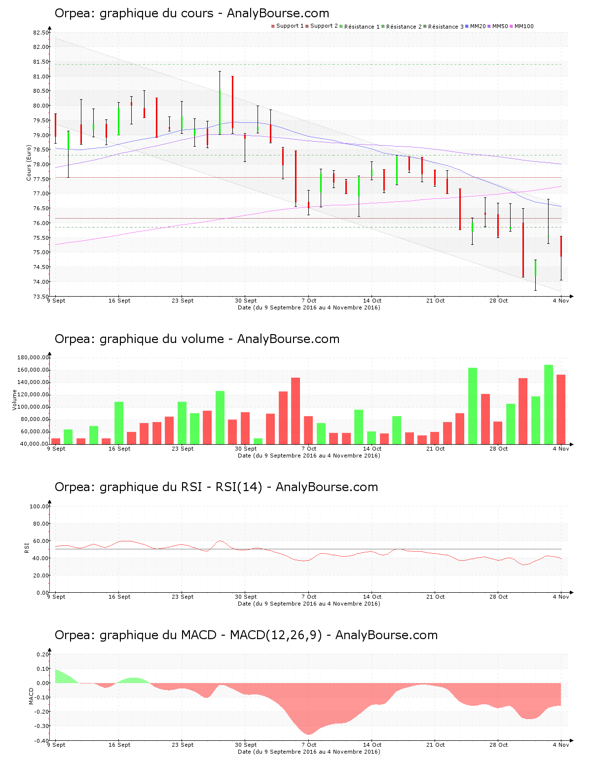 Ces informations constituent une analyse technique de l’action Orpea au dimanche 6 novembre 2016. Cette analyse peut être invalidée par des éléments plus récents, et ne constitue en aucune manière une incitation d’achat ou de vente sur les marchés financiers. Le lecteur reste libre et responsable de l’interprétation et de l’usage faits de ces informations.