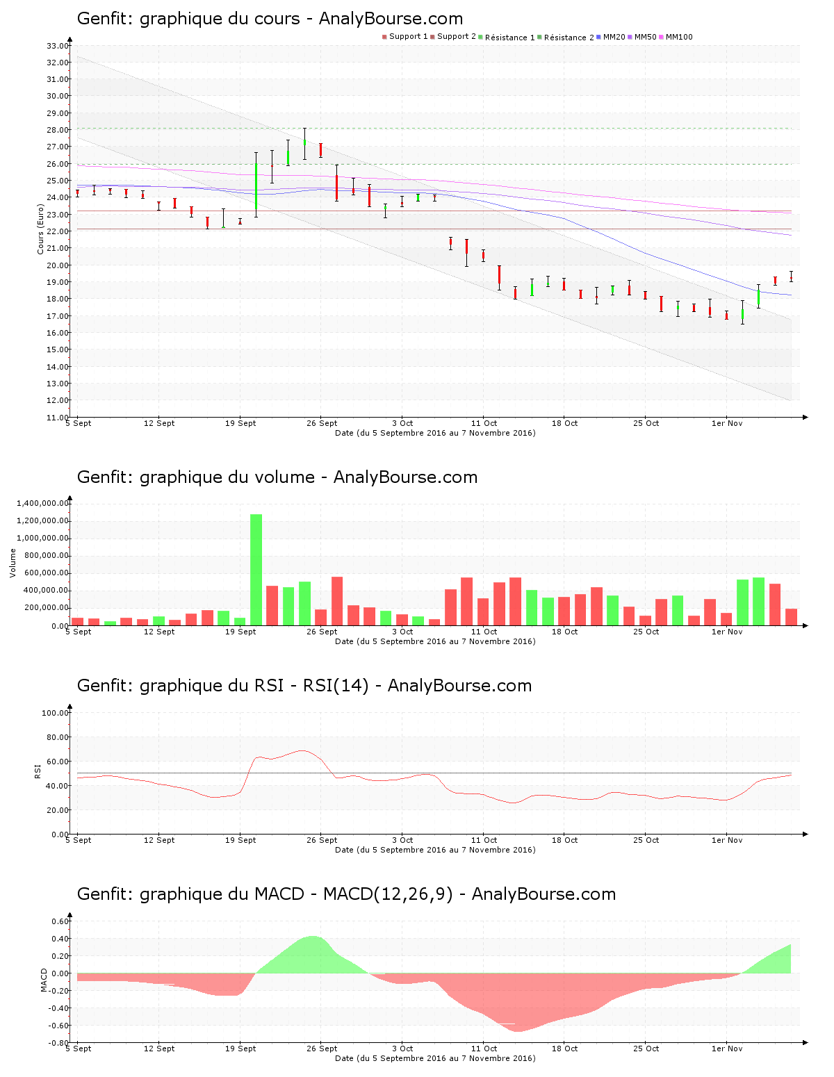 Voilà finalement quatre jours de cotations que l’action Genfit est en hausse ininterrompue. Le cours de Genfit subit donc depuis mercredi dernier une solide pression acheteuse, animée par un comportement haussier de 14.35%. Avec un comportement en croissance de 1.59%, l’action Genfit est encore ce lundi 7 novembre sollicitée, dans un volume d’approximativement 185000 actions échangées à 11:58. Cette dernière subissait déjà vendredi dernier une pression acheteuse, affectée par un cours haussier de 2.22%. Débutant à 18.900 € pour se rendre à 19.200 €, l’action se revalorise désormais de 0.300 €. On constate une manifeste effervescence ce jour sur le titre, avec un pourcentage de 3.10% qui distance les extrêmes de Genfit.