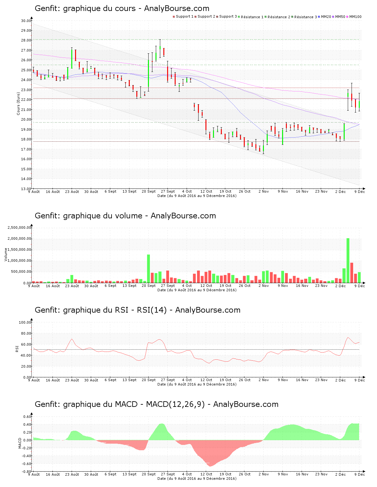 Ces informations constituent une analyse technique de l’action Genfit au dimanche 11 décembre 2016. Cette analyse peut être invalidée par des éléments plus récents, et ne constitue en aucune manière une incitation d’achat ou de vente sur les marchés financiers. Le lecteur reste libre et responsable de l’interprétation et de l’usage faits de ces informations.