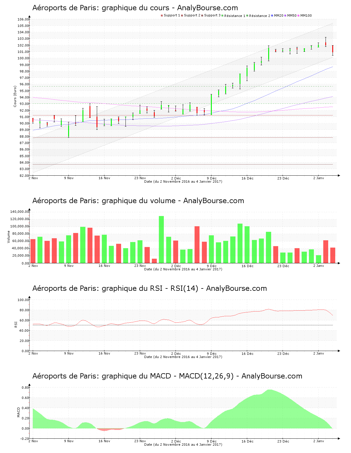 L’indicateur MACD de Aéroports de Paris est passé du côté négatif