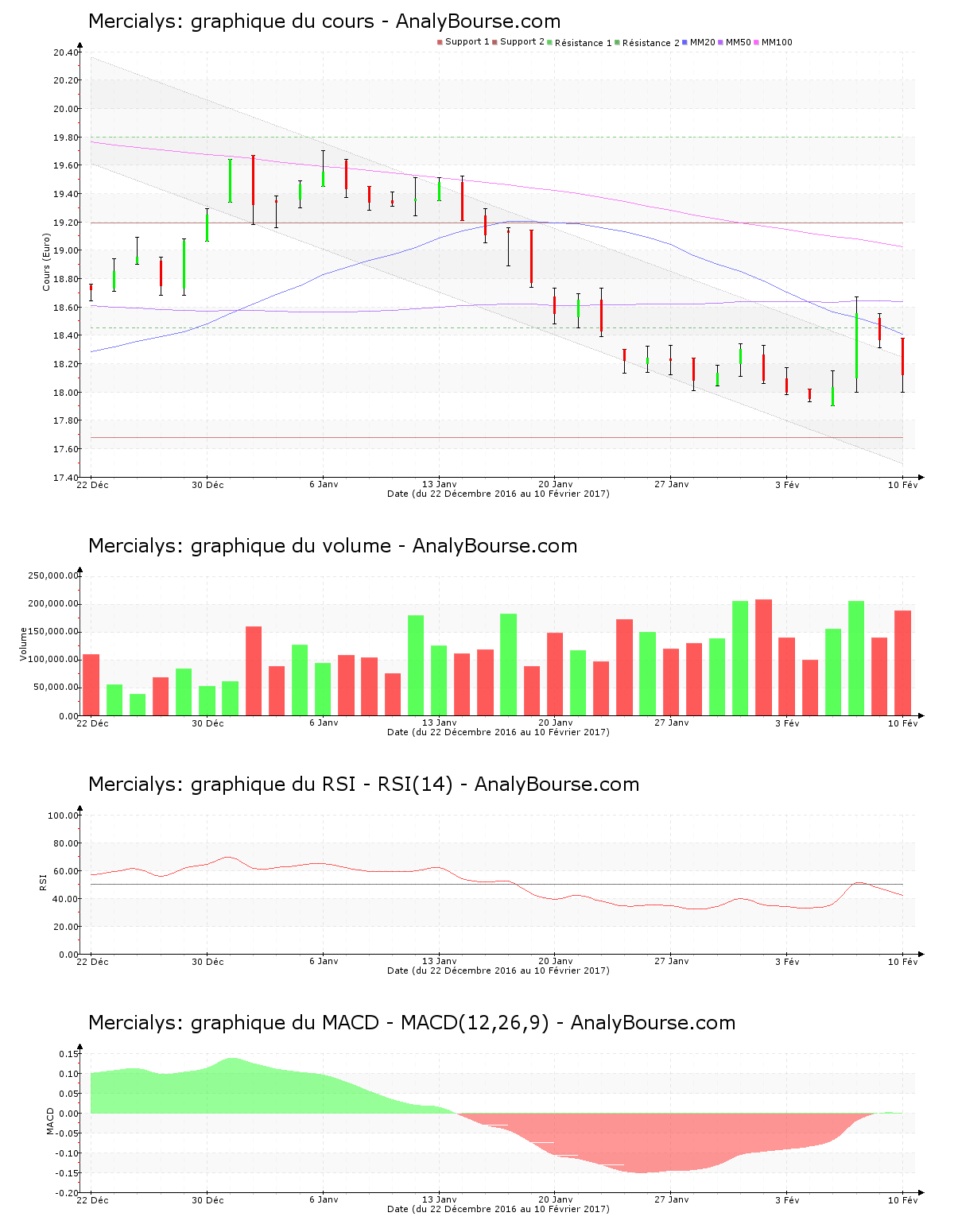 Ces informations constituent une analyse technique de la valeur Mercialys au dimanche 12 février 2017. Cette analyse peut être invalidée par des éléments plus récents, et ne constitue en aucune manière une incitation d’achat ou de vente sur les marchés financiers. Le lecteur reste libre et responsable de l’interprétation et de l’usage faits de ces informations.