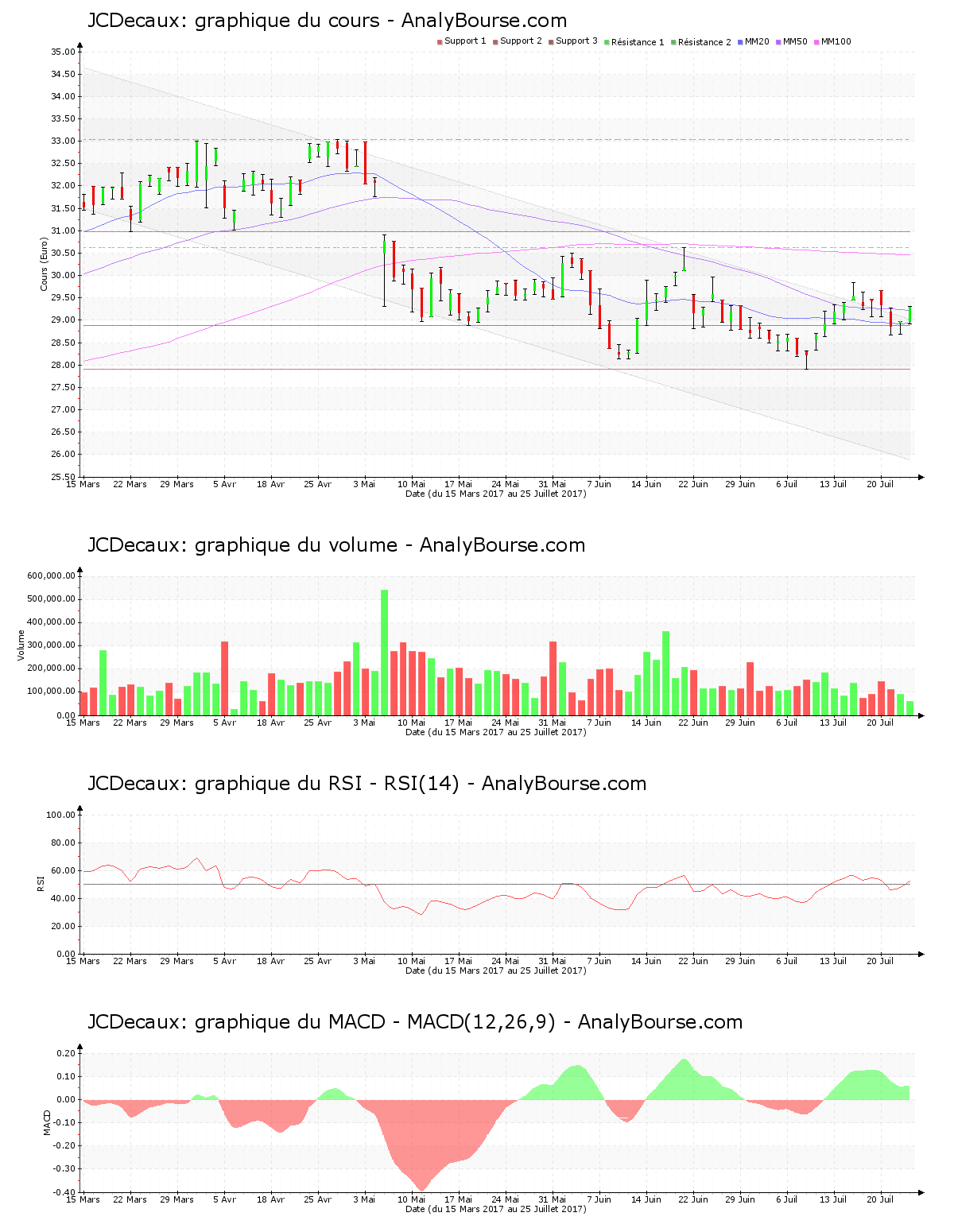 Soulignée par un cours décroissant de 0.10%, JCDecaux subit sur une semaine de cotations un certain équilibre. Marquée par un cours baissier de 0.95%, la volonté d’achat sur le cours sur un mois est de même à l’équilibre. Avec un développement baissier de 6.30%, JCDecaux est en régression en un an.