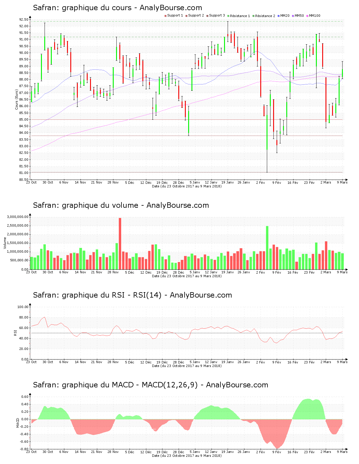 |Avec un développement haussier de 4.62%, Safran explose cette semaine. L’action atteint maintenant la valorisation de 88.760 €. Safran était au contraire la semaine dernière affaibli, avec un mouvement en conséquente régression de 6.05%. La valeur Safran bondit donc fortement ces cinq dernières séances. Le cours varie désormais proche de la résistance des 91.180 €.