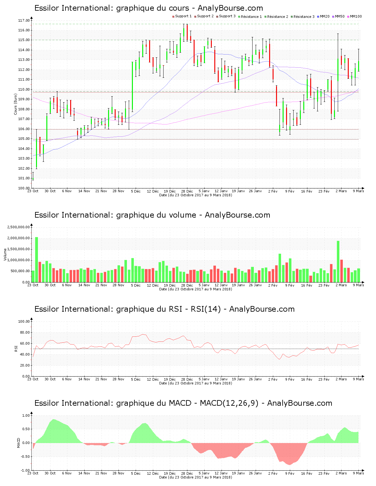 A mettre en relation avec les 942000 de la semaine dernière, avec un montant moyen par jour d’à peu près 583000 actions échangées, le volume est en diminution ces derniers jours pour l’action Essilor International. Ce volume en diminution dévoile sur la valeur une perte d’intéret.
