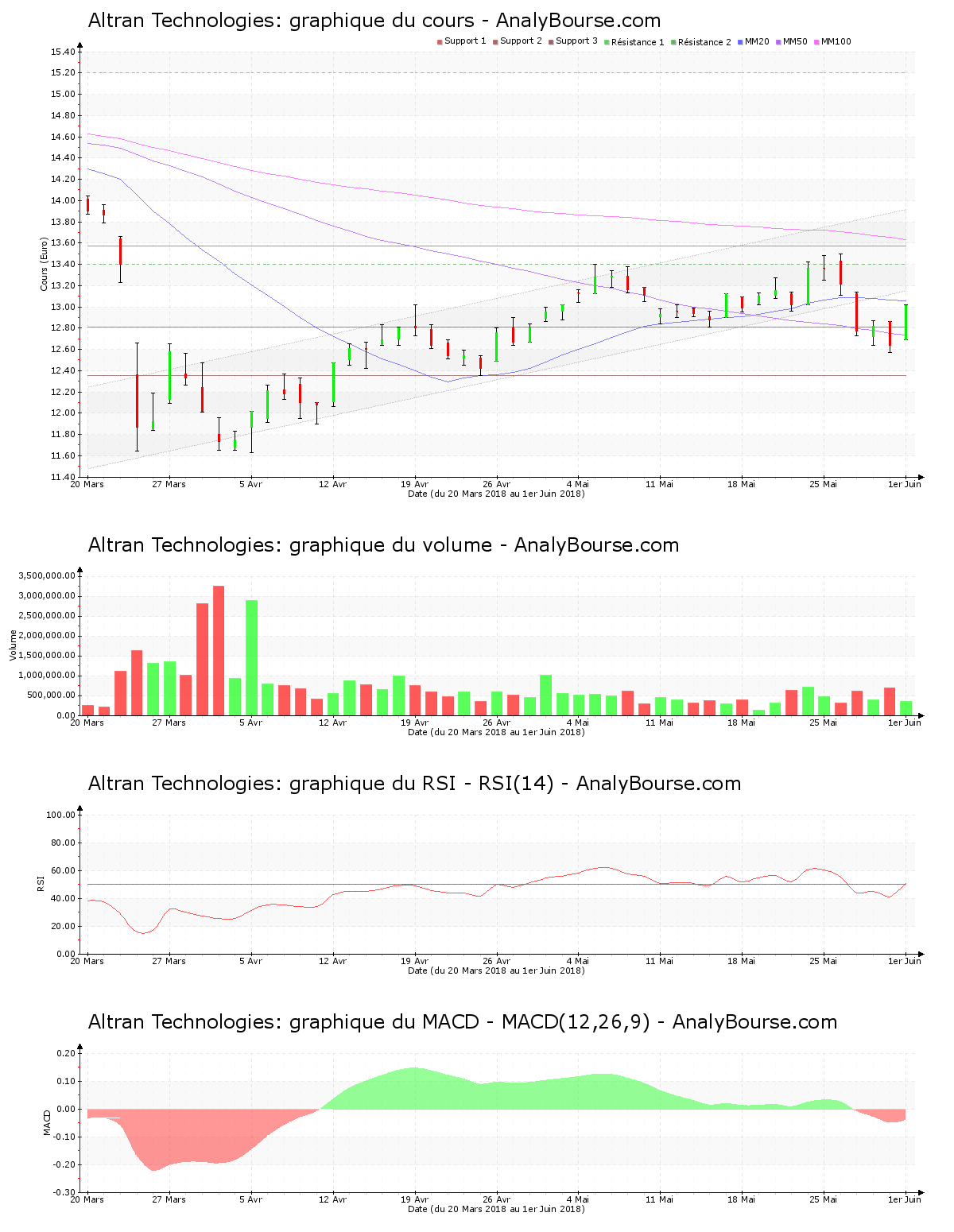 Ces informations constituent une analyse technique de l’action Altran Technologies au dimanche 3 juin 2018. Cette analyse peut être invalidée par des éléments plus récents, et ne constitue en aucune manière une incitation d’achat ou de vente sur les marchés financiers. Le lecteur reste libre et responsable de l’interprétation et de l’usage faits de ces informations.