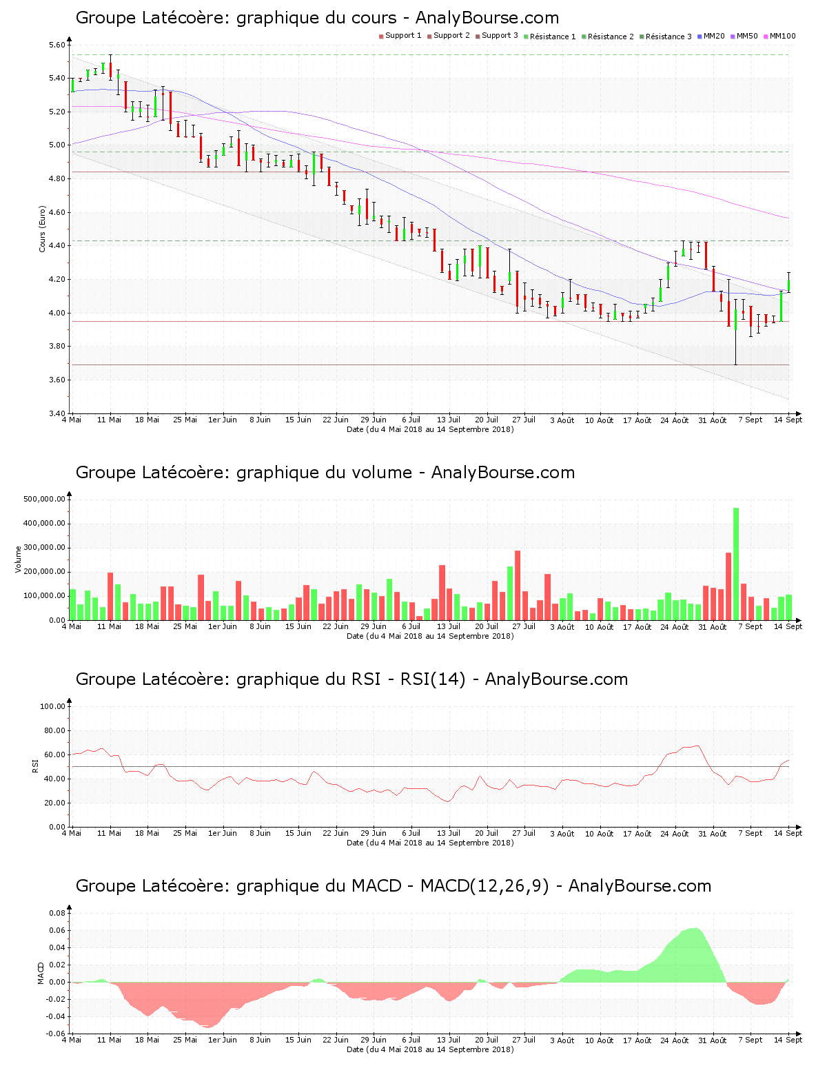 |Avec un cours haussier de 6.89%, le parcours est extrêmement favorable ces derniers jours pour Groupe Latécoère. La valeur se revend finalement à 4.190 €. Avec un cours baissier de 5.08%, Groupe Latécoère était au contraire en forte régression la semaine dernière. La valeur Groupe Latécoère bondit donc sensiblement ces dernières séances. Le cours fluctuant dans un range de 9.28%, Groupe Latécoère dévoile une relative instabilité ces dernières séances. Enfin, le cours se développe finalement près de la résistance des 4.200 €. La valeur fluctue sérieusement au-delà de son canal. Elle ne s’enclave effectivement plus dans le canal à l’intérieur duquel elle évoluait depuis quelques temps.