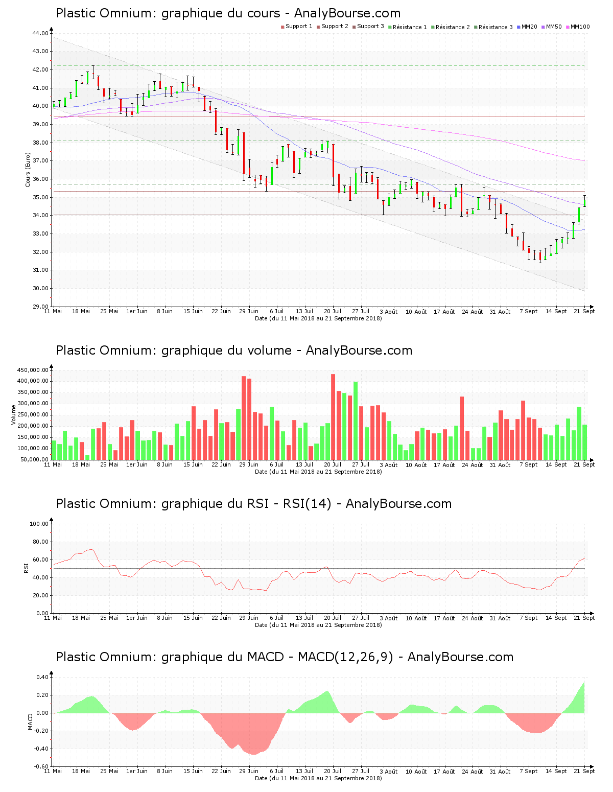 Imprégnée par un cours croissant de 7.03%, la sollicitation sur Plastic Omnium en cinq jours est particulièrement grande. Le constat est de même manière favorable sur un mois pour le titre, avec un développement haussier de 2.20%. Concrétisée par un cours décroissant de 0.34%, l’intention d’achat sur Plastic Omnium en un an est cependant neutre.