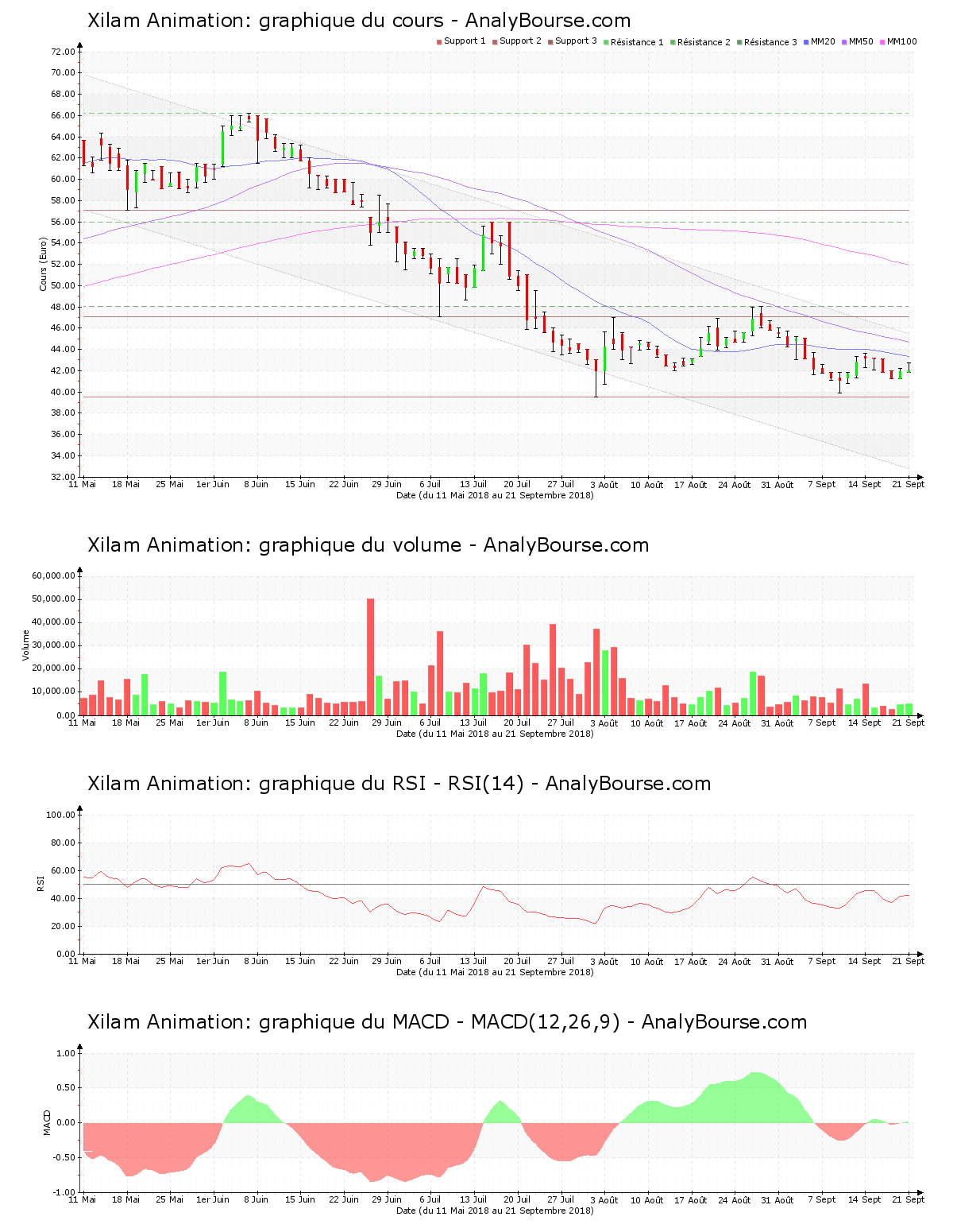 |Avec un comportement baissier de 2.67%, le bilan est décourageant ces dernières séances pour Xilam Animation. L’action atteint finalement la cotation de 42.000 €. Quantifiée par un cours haussier de 3.11%, la demande sur Xilam Animation la semaine dernière était par contre bien présente. La valeur Xilam Animation rebaisse par conséquent un peu ces cinq derniers jours. C’est au niveau supérieur de son canal que l’action navigue.