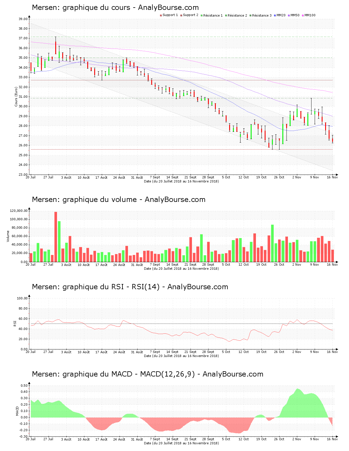 Baisse persistante depuis le vendredi 9 novembre 2018 pour l’action Mersen (FR0000039620 XPAR MRN) sur les marchés.
