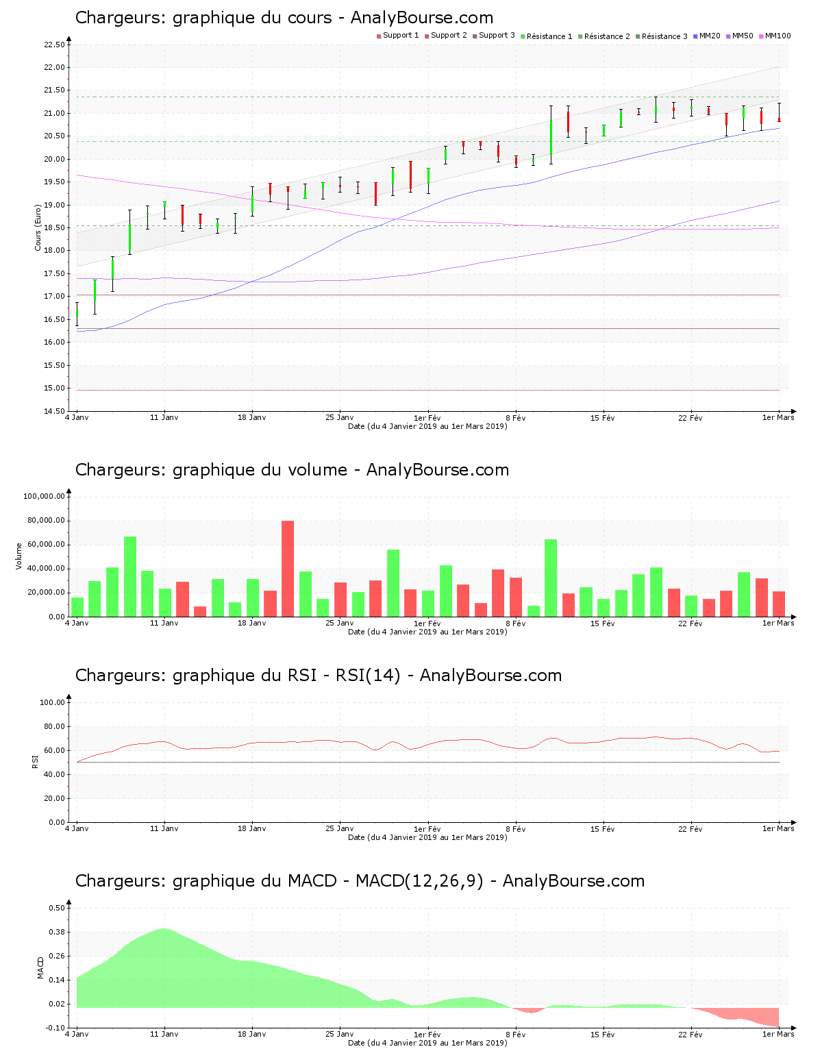 Avec un mouvement baissier de 1.51%, Chargeurs est en régression ces cinq dernières séances de cotations. L’action se monnaye dorénavant à 20.820 €. Avec un comportement haussier de 1.93%, le constat était à l’opposé bon la semaine dernière pour Chargeurs. L’orientation s’inverse ainsi un peu ces dernières séances. L’action se positionne fortement en-dessous de son canal. Elle a effectivement franchi la zone inférieure du canal dans lequel cette dernière s’enfermait ces dernières semaines.