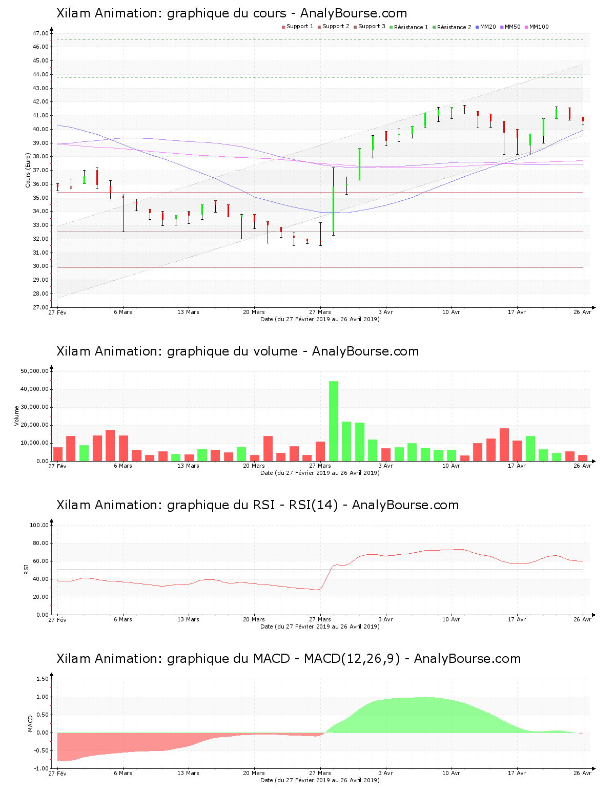 |Caractérisée par un cours en progression de 3.05%, Xilam Animation montre ces cinq derniers jours une pression acheteuse. L’action atteint maintenant la somme de 40.600 €. Xilam Animation était par contre en vigoureuse diminution la semaine dernière, avec un cours en décroissance de 5.29%. La répartition acheteurs/vendeurs se retourne donc avec vigueur ces cinq dernières séances. Xilam Animation oscille ces cinq dernières séances dans des limites de 9.03%, suggérant une manifeste agitation sur le titre. La valeur se positionne dans la zone inférieure du canal à l’intérieur duquel cette dernière s’enclave depuis quelques temps.
