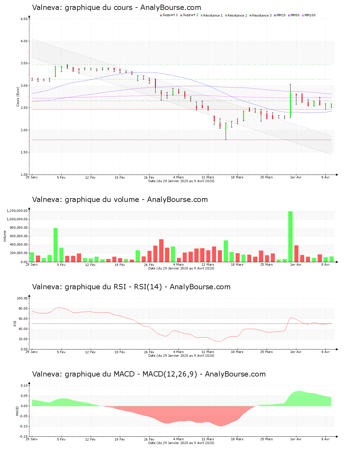 Côté indicateurs, le RSI est relativement stable ces derniers jours. Ce dernier se positionne ainsi toujours dans le niveau neutre. De son côté, en ce qui concerne le MACD, on repère qu’il est en diminution ces dernières séances. C’est toutefois encore une évolution du cours en progression qu’il esquisse à court-moyen terme. Voici maintenant 46 jours que la moyenne mobile sur 50 jours de la valeur Valneva se situe au-dessus de sa moyenne mobile sur 100 jours.