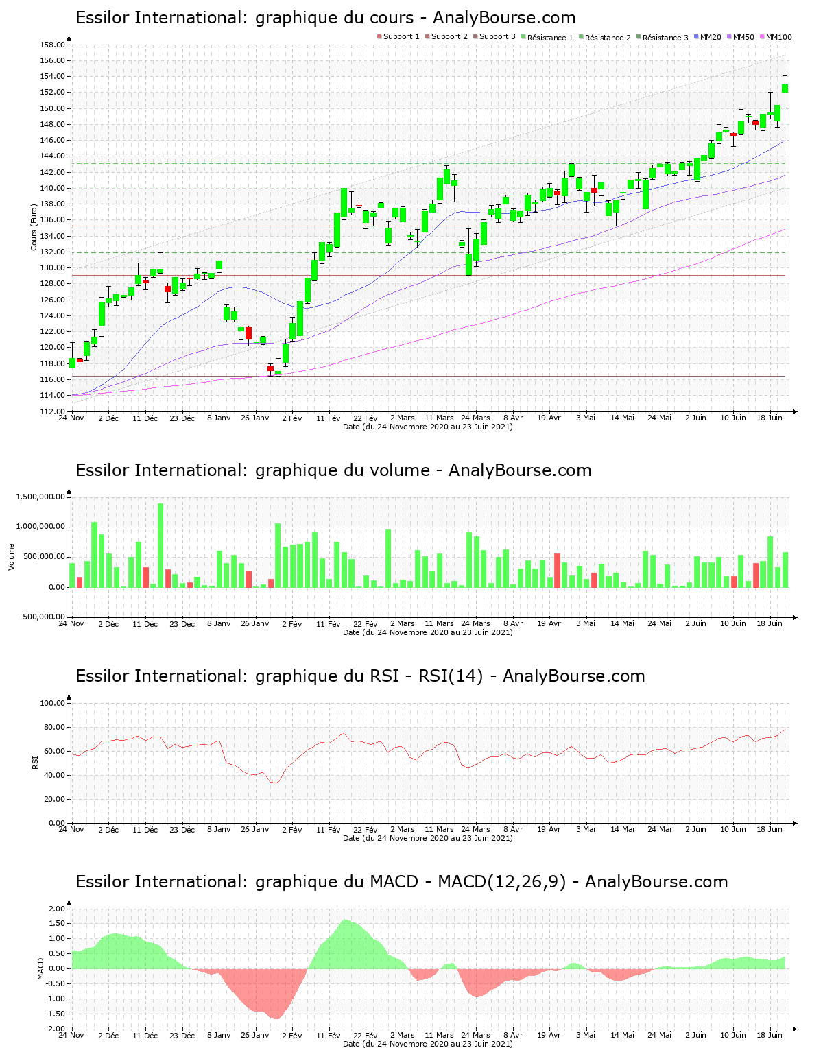 La valeur Essilor International (FR0000121667 XPAR EI) est en hausse sur les marchés, depuis 4 jours de cotations.