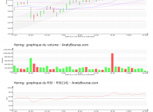 L’indicateur RSI de l’action Kering (FR0000121485 XPAR KER) a basculé ce jour à la Bourse de Paris au niveau de vente. L’action Kering est en baisse ce mardi