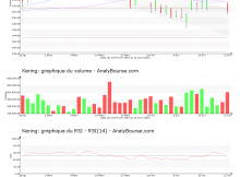L’indicateur RSI de la valeur Kering (FR0000121485 XPAR KER) a basculé ce jour au niveau de vente. Avec approximativement 404000 titres échangés à 14:04, affectée par un cours