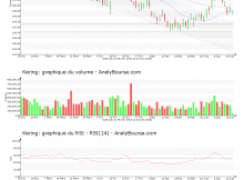 Déplacement du RSI au niveau d’achat pour la valeur Kering (FR0000121485 XPAR KER) ce mercredi après-midi à la Bourse. Avec sensiblement 72000 actions échangées à 14:33, avec un