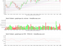 Déplacement ce mardi après-midi du RSI de l’action Saint-Gobain (FR0000125007 XPAR SGO) au niveau de vente. Avec 461000 de titres échangés à 15:39, avec un cours en diminution