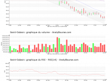 L’indicateur RSI de l’action Saint-Gobain (FR0000125007 XPAR SGO) est passé en ce dernier jour de la semaine dans le niveau de vente. L’action Saint-Gobain est en régression ce