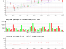 Evolution du RSI dans le niveau de vente pour l’action Sequana (FR0011352590 XPAR SEQ) ce mercredi à la Bourse de Paris. Dans un volume d’approximativement 209000 titres échangés
