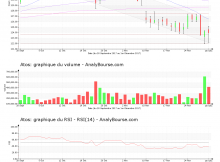 L’indicateur RSI de l’action Atos (FR0000051732 XPAR ATO) a basculé ce jour au niveau de vente. L’action Atos est aujourd’hui fragilisée, avec un comportement en décroissance de 1.53%,