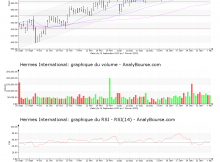 Le RSI de l’action Hermes International (FR0000052292 XPAR RMS) a basculé ce mardi dans le niveau d’achat. Dans un volume d’à peu près 69000 titres échangés à la