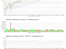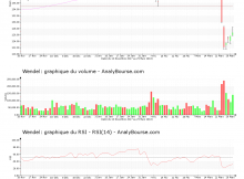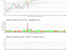L’indicateur RSI de l’action Wendel (FR0000121204 XPAR MF) est passé aujourd’hui dans le niveau de vente. Avec un volume à 15:40 de 19000 titres échangés, reflétée par un